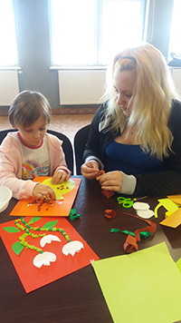 Przebiśnieg - delikatny kwiatek, jeden ze zwiastunów wiosny. Do zrobienia tej wiosennej pracy zachęciłyśmy podopiecznych na zajęciach plastycznych. Aby wykonać tą wiosenną pracę potrzebujemy: kolorowych kartek z bloku technicznego, płatków kosmetycznych, zielonej bibuły, kleju, nożyczek, ołówka, gumki (żeby narysować elementy kwiatka do wycięcia). Z płatków kosmetycznych wycinamy kształt płatków przebiśniegu: jeden płatek tniemy na pół, drugi przycinamy na kształt listka. Z kolorowego papieru wycinamy łodygę, liście, łodygę możemy wykonać z zielonych kulek wykonanych z bibuły. Naklejamy wszystko na kartkę. Przebiśniegi na kolorowych kartkach dzieci ozdobiły według własnego pomysłu.