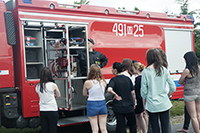 Po akcji wychowanki miały możliwość podziwiania najnowocześniejszego sprzętu gaśniczego, który kolejno omawiał dowódca wozu.