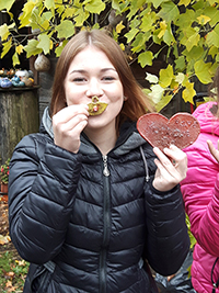 Zajęcia dzisiejszego dnia zaowocowały prezentacją końcowego efektu naszych ceramicznych wytworów. Pod czujnym okiem pana Daniela, w specjalnie przystosowanym do tego piecu, wypalałyśmy nasze ceramiczne wyroby. Aby nabrały one pożądanego wyglądu, szklana farba, która pokrywa nasze prace musi rozpuścić się w temperaturze bliskiej 1000 OC. Następnie ceramika wyjmowana jest z pieca i „zakopywana” w trocinach. Czynność ta pozwala nadać każdemu z przedmiotów indywidualnego charakteru oraz podkreślić jego niepowtarzalność. Na koniec przedmioty zanurzamy w zimnej wodzie, dzięki czemu otrzymujemy efekt końcowy – różnokolorową, niekiedy artystycznie popękaną i pofalowaną ceramikę. Metoda wypalania ceramiki, którą zaprezentował nam pan Daniel i której miałyśmy szanse się nauczyć nosi nazwę RAKU.