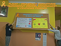 Wychowankom została przedstawiona prezentacja multimedialna na temat „ Głodu i niedożywienia” Wyjaśniono, czym różni się głód jawny od utajonego, zapoznano z najczęstszymi chorobami spowodowanymi przez niedożywienie ( marazm, kwashiorkor). Jednocześnie zwrócono uwagę, jak ważną rolę odgrywają organizacje humanitarne, których celem jest ratowanie i podtrzymywanie życia oraz zapewnianie poszanowania godności ludzkiej osobom zagrożonym lub dotkniętym skutkami katastrof. Na koniec zajęć, wychowanki przygotowały dwa plakaty z logotypami organizacji humanitarnych w Polsce i na świecie.