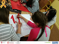 W ramach kampanii postanowiłyśmy ozdobić naszą świetlicę, w związku z powyższym przygotowałyśmy dwa plakaty odwołujące się do walki z przemocą i wstążkę z krepiny, która jest symbolem kampanii.