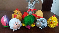 Przed świętami Gminny Ośrodek Kultury w Platerowie zorganizował konkurs na własnoręcznie wykonaną ,,Pisankę Wielkanocną” .Celem konkursu jest: przybliżenie i zainteresowanie dzieci, młodzieży i dorosłych tradycjami związanymi ze Świętami Wielkanocnymi, zapoznanie mieszkańców Gminy Platerów z tradycjami ludowymi, rozwijanie i kształtowanie wyobraźni plastycznej , prezentacja talentów plastycznych mieszkańców Gminy Platerów. Jak wynika z regulaminu oceniane będą: nawiązanie do tradycji świątecznej , pomysłowość , staranność wykonania oraz wrażenia artystyczne. Wychowanki naszej placówki postanowiły podjąć wyzwanie i wziąć udział w proponowanym konkursie. Same wymyśliły i wykonały oryginalne pisanki. Prace zostały wykonane różnymi technikami plastycznymi przy użyciu niekonwencjonalnych materiałów. Zając powstał z bazi, kurczak ze złocistych płatków kukurydzianych a baranek z waty. Każda z pisanek jest wykonana z wielką precyzją i starannością. Z niecierpliwością oczekujemy na rozstrzygnięcie konkursu.