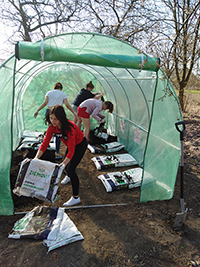 W sobotnie popołudnie ruszyłyśmy z sekcją „uprawa ogródka warzywno-ziołowego”, w czasie której, będziemy brały udział we wszystkich czynnościach związanych z uprawą warzyw. Przygodę z ogródkiem zaczęłyśmy od przygotowania podłoża w tunelu foliowym, uzupełniając go odpowiednią ziemią torfową. Następnie wysiałyśmy nasiona: rzodkiewki, szczypioru i szpinaku oraz wysadziłyśmy rozsadę sałaty. Na koniec wszystko podlałyśmy. Teraz zostało mam tylko doglądanie roślin i czekanie na ich szybki wzrost.