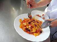 i regionalna”. Dziewczęta miały możliwość zapoznania się z potrawami staropolskimi oraz potrawami charakteryzującymi dany region. Następnie odbyły się zajęcia praktyczne gdzie dziewczęta nabywały umiejętności obróbki ręcznej warzyw i produktów mięsnych podczas przygotowania „Leczo”.