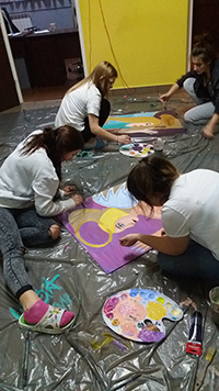 Podczas naszego spotkania z Panią Izą nauczyłyśmy się, jak ułatwić sobie prace podczas malowania portretu Anioła. Portrety Aniołów wykonywałyśmy na dużych płytach. Pracę zaczęłyśmy od wykonania szkicu. Aby było nam łatwiej, koleżanki odrysowały nasze sylwetki na płycie. Po wykonaniu obrysu dobierałyśmy kolory zgodnie z wyobrażeniem naszego własnego Anioła. Prace przerosły nasze oczekiwania. Nad ich wykonaniem cierpliwie czuwała nasz instruktorka. Za każdym razem, cieszymy się z odwiedzin Pani Izy i z niecierpliwością czekamy na kolejne zajęcia.